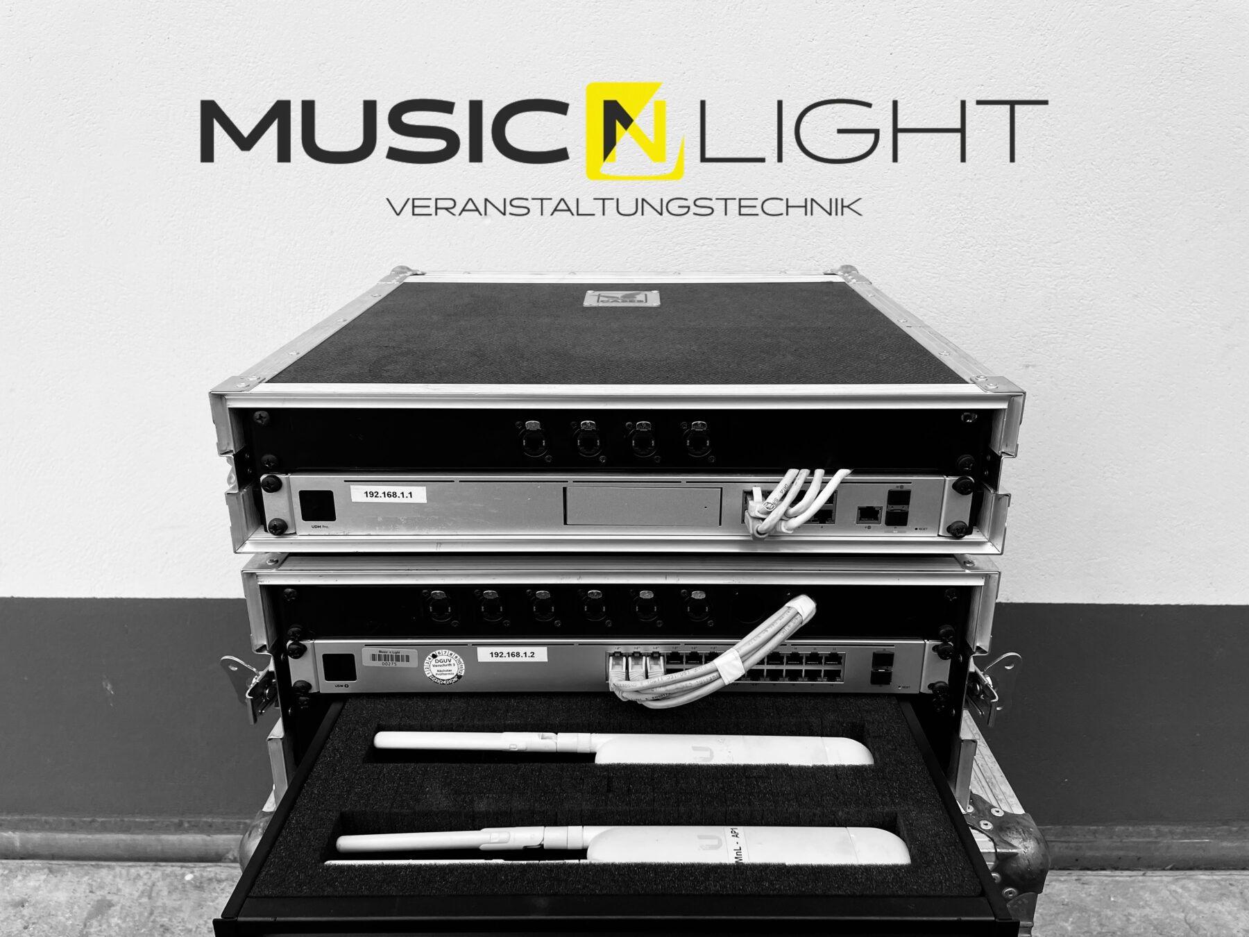 Ein starkes Netzwerk ist heute ein zentraler Bestandteil moderner Veranstaltungstechnik. Von Lichtsteuerung über Audio bis hin zu Streaming und Kommunikationssystemen. Mit unserer Ubiquiti-Technik bist du bestens ausgestattet für reibungslose Abläufe und maximale Performance.
